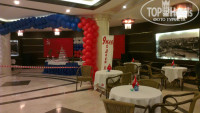 Ресторан действительно расположен на цокольном этаже, но это не заметно, т.к. со стороны бассейна кажется что ты находишся на первом, и в этом плюс, на майских было не слишком жарко, а вот в середину сезона это приимущество. Курящих не чувствовалось, поскольку открытая территория приёма пищи хорошо закрыта стеклянными стенами.
