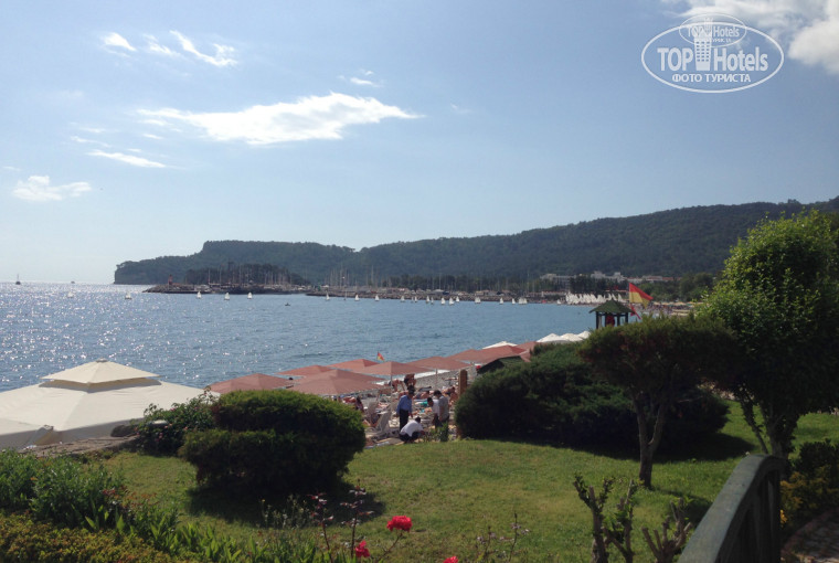 С рассветом выйдя из крохотного номера, о них вы можете почитать в других отзывах, мы увидели красоту Турецкой природы! Отель находится в самом центре Кемера! Вокруг все зеленое, кучевые облака цепляются за горы, пахнет пряно дурманящими цветами, одним словом лето! Ура!!!