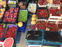 Накатавшись мы набрели на метсный рыночек, муж никогда не пробовал ШЕЛКОВИЦУ, а, я поскольку росла на Юге, решила исправить это недоразумение! Шелковица была превосходной сладко-медовой, такой как в детстве! Кстати, брали мы и клубнику- ни трава, как у нас сейчас, а сочная, вкусная! Брали черешню- она к слову подкачала, опять же сравниваю со своими вкусовыми ощущениями.