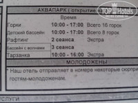 Аквапарк отличный. Ехали ради него - ребенок-экстримал. Катались на всех горках подряд. Детей только на белую горку не пускали. Никто нигде не убился и не ободрался. Надо просто соблюдать технику безопасности при катании. Голубая горка , где можно ехать вчетвером одновременно-самая опасная на мой взгляд. Там надо кататься только лежа-и тогда ничего не случится. Очередей не было вообще. За 7 дней так и не включили "волну" и "рафтинг"-наверное не сезон.