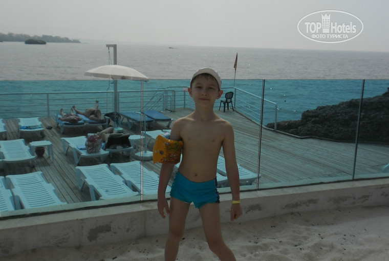 Мы знали про отсутствие пляжа - поэтому ни сколько не расстроились, когда его увидели. Он даже очень ничего. Дети были в восторге. Вода чистая (ничего в ней не плавало), прозрачная, но прохладная. Сыну(7 лет) очень понравилось прыгать с пирса, впрочем, как и нам.