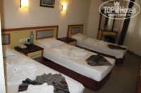 Минусы: Заселение приехали в начале мая, двумя семьями, положили,как полагается в паспорта по 10 долларов, попросили номера рядом, при чем заметьте не в разгар сезона(номеров было куча свободных, как выяснилось потом),в открытую сказали, что номера только на первом этаже, а если хотите рядом и выше, то нужно заплатить по 20 долларов, итог заплатили за два стандарта 40 долларов, номера, мебель не новая, ну да ладно, телевизор маленький совдеповский, это полбеды, не за этим едим, но душевая кабина, это уже что-то с чем-то,она реально сделана под менеджера их ресторана Алибая, но не все же такие, тем более в отеле отдыхают только русские и украинцы,а у нас в основном все мужчины высокие и крупные,отелю срочно нужно делать что-то с размером душевых кабин.Уборка номера,пол мыли да, но пыль на тумбочках была с палец толщиной,не знаю чем они моют, но лужи на полу стояли нереальные, это при том что в мае итак сырости хватает....
