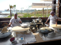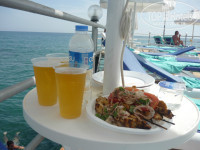 Еда. Если писали что нет еды или её мало, господа - это враки. Кушанья было просто завались: и салаты (штук 15 насчитал), и картофель в разных вариациях, спагетти и просто какие то финтеклюшные макароны, мясо курицы (жаренное, паренное, варенное,в сухарях, во фритюре), говядина и кусками тушенная и кругляшками жаренная, несколько видов их колбасы, много было зелени (не знаю даже как называется, но интересная на вкус), про сладости я уже не говорю. Короче всякого и всего валом. Причем замечу что обед мы проводили на пляже, там было почти тоже самое.