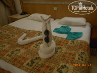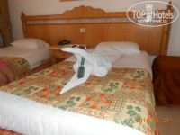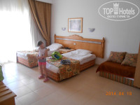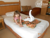 Номер: две огромные комнаты, в одной одна кровать наверное пятиместная, в другой три полуторки. Две большие лоджии, в каждой комнате телевизор, кондиционер, шкаф, зеркала. В номере была мини кухня с большим холодильником, с кухонными шкафами, мойка, не хватало только плиты (шучу). Туалет совмещен с душем, шторка была маленькая, но нас не напрягала. Шампуня нет,мыло жидкое, но мы все с собой брали, есть фен. Полотенца пляжные, банные и даже пляжная сумка.Номер был около ресепшн. Убирали каждый день, бакшиш оставляли через день и у нас всегда что нибудь было или лебедь или крокодил на радость детям.