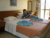 Отель очень достойный, есть бассейн, лежаки, зонтики. Территория маленькая, есть корт платный, бильярд, игровые автоматы. Персонал, русскоговорящий, очень приветливый, всегда улыбающийся и готовый помочь. Еда вкусная, всё всегда свежее, но немного однообразное, но всё равно ели с удовольствием. Завтрак - шведский стол. Ужин или обед на выбор – шведский стол, напитки оплачиваются отдельно. Обслуживание отличное, все стараются, встретят, усадят, предложат напитки за отдельную плата. Очень удобно поменять ужин на обед, т.к. отель находится вначале курорта, а ближе к вечеру хочется и погулять и чего-нибудь прикупить, а поужинать можно в любом ресторане, кафешке, благо этого там на каждом шагу. Ночная жизнь пока ещё не в самом разгаре, но клубы уже открываются, зазывалы на улице работают. Очень хороший лунопарк, много аттракционов на любой вкус и цвет, как для взрослого так и для ребёнка.