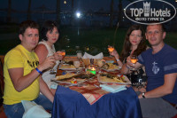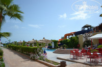 шел ремонт делали горки и большой бассейн но нам не мешало .Так что когда все сделают будет рай для детей! И так про еду кормили хорошо всегда было мясо курица и вкуснейшая рыба с лимоном и что еще готовили на гриле! Много салатов овощей вкусная паста на завтрак тоже и йогурт был разный и фрукты порезанные и выбор сыров ну а сладкий стол всегда на высоте был всегда какие пироженки разные и на завтрак много разной выпечки !Так что кто пишет что там нет еды это просто бред! Днем всегда было вкусное мороженное так же иногда обедали в кафе на пляже там тоже все очень вкусно и гриль и соски и пицца !Из напиток пиво хорошие пили вино мы в основном белое но есть и красное да и коктейлей они могут намешать так что многие наше соотечественники пили с утра до вечера да потом орали! Пляж не советовала бы туда ехать взрослым людям потом что нормального захода в море там нет а пирс есть и довольно большой но там на всем побережье одно и тоже да и с детишками которые по взрослей только! Так что нас не напрягало прогуляться туда обратно! Аниматоров там немного но все они молодцы стараются и Клоша который делает зарядку в бассейне красавец Мадо да и девушка в мини клубе тоже приятная целый день что нИ будь он делают и в дартс играют и танцы и зарядка! Вечером шоу и дискотека была так же живая музыка была Так что нам было весело! Вообще хочется сказать что доброжелательное отношение всего персонала кто работает в этом отеле все улыбаются здороваться все начиная от садовников и уборщики комнат поэтому очень приятно что тебе там правда рады очень хорошая атмосфера)Явно что отель и менеджмент стараются все сделать для вашего отдыха поэтому на территории что делается такой будет красивый мини клуб для детей! Отдельное спасибо Елене с гест рейшенз которая провела меня по отелю все рассказала и показала и записала все замечания!