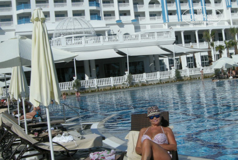 Отель замечательный во всех отношениях. Он очень красивый, как внутри, так и снаружи, похож на дворец! Номер " de luxe room sea view", в котором я жила, шикарный: очень удобная ортопедическая кровать, сейф бесплатный, разнообразные туалетные принадлежности, шкафы с подсветкой, мебель новая красивая и удобная, уборка, смена полотенец, пополнение бара - ежедневные. Питание-очень полезное, вкусное, правильное, всё свежее, всегда есть рыба и мясо нескольких сортов, натуральный сок-бесплатно, фрукты всегда и в изобилии: черешня, клубника, дыня, арбуз, мандарины, апельсины, ананасы, сливы, абрикосы, яблоки, груши и т.д. Территория не очень большая, но очень ухоженная и продуман каждый уголок, посажены дорогие растения. 2 пляжа у моря, лежаков достаточно. 2 открытых приятных бассейна, лежаков тоже хватает, 1 закрытый в SPA центре -с подогревом. Прекрасное кафе-кондитерская, даже я не любитель сладкого, захаживала туда ежедневно попить кофейку с пирожными или перекусить. Также на территории есть классное кафе "Flexilis", если не хочется одеваться и идти в главный ресторан, прямо в купальнике ходила обедать в это кафе, там очень вкусненько и разнообразно. Анимация очень старалась, ребята классные, весёлые и очень хорошие, трудолюбивые. В течении дня я принимала участие в различных занятиях и развлечениях, даже на всё не хватало времени. Ежедневно были вечерние представления и концерты с участием приезжих профессиональных артистов, очень здорово! В барах хорошие качественные напитки, в том числе спиртные, в Лобби французские коньяки, импортные виски, ликёры, шампанское и т.д. и всё это бесплатно! Ребята-бармены делают классные коктейли, как алкогольные, так и безалкогольные! Сервис-СУПЕР, никто ничего не запрещает, все улыбаются, персонал очень внимательный, правильно подобран администрацией отеля. Генеральный менеджер Olcay Orhan (за точность написания не ручаюсь) с утра до вечера в отеле всё культурно контролирует, все менеджеры всегда на своих местах, меня заселял менеджер Ergan- сразу видно профессионал своего дела,отличный номер предоставил почти сразу же, хоть я приехала утром, а заселение должно быть в 14.00. Также мне понравилась работа Юлии Rozhoshenko Guest Relations, которая решала все вопросы профессионально, оказывала помощь при обращении в любое время дня и ночи,помогала переживала за всё (кстати эта служба работала в отеле круглосуточно и они все русскоязычные). SPA-салон прикольный: хамам, сауна, соляная комната, холодный бассейн и конечно классные массажисты.Отель высшего уровня, он очень современный и удобный, звёздность 5+, мне очень понравился! Обязательно поеду в него снова!