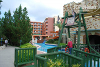 ТЕРРИТОРИЯ. ПЛЯЖ. ПЕРСОНАЛ. Территория большая и является по сути одной на 3 отеля. Очень красивая, зеленая. Много разных развлекательных сооружений для детей от 3-15 лет. Куча разных горок и для детей и для взрослых. Много бассейнов. Неплохой Хамам, но бывало и лучше. Мы сторговались за 4-х за 140$ (сауна, кофейный пилинг, хамам, массаж всего тела со всех сторон, маска из глины для лица. Правда когда на следующий день выдали на собрании распечатку по экскурсиям, стоимость хамама и была 35$/чел). Делали сразу в день прилета. В принципе сходить изначально канешно стоит. Также в Спа-салоне есть для ножек и ручек пилинг рыбками. Стоит 15$. В нашем отеле проходила вечерняя анимационная программа. В основном привозные артисты. Очень даже на уровне, нам очень они понравились. Программа расчитана на 11 дней, затем повторяется. В коридоре около магазинчиков на стене висят плакаты, что конкретно проходит в вечерней программе. Т.к. мы были всего 4 дня, то конечно к сожалению все не видели. Веселый и несложный отельный танец. Аниматоры повторяют его у бассейнов в течении дня и также после вечерней программы. Мы любим эти танцы и с удовольствием разучиваем. Сложного ничего нет и при этом весело. Единственное в амфитеатре стульчики были все время мокрыми от влажности и садиться было не очень приятно, нада либо вытирать их либо что то стелить. В соседнем отеле проходит дискотека с 23-00 до 3-00. Напитки там бесплатно до 1-00, затем платно. Wi-Fi в лобби бесплатно. В номере и по всей территории отеля 1 день - 5 евро, 7 дней - 15 евро. В номер при заселении кладут 2 бутылки воды по 1,5л. В дальнейшем пополняют по 1 бутылке. На территории отеля стоят холодильники с бутылочками воды по 0,5л. Их можно брать в любом количестве бесплатно. Гиды находятся на ресепшене с 10 утра до семи вечера. Рускоговорящие. По любому вопросу всегда с охотой и улыбочкой помогут. Молодцы. В отеле также можно арендовать детскую коляску, если не хотите везти свою: 1 день - 3 евро, 7 дней - 15 евро. Есть рестораны аля-карте: Турецкий, Мексиканский, Итальянский, Азиатский. Есть еще Рыбный, но он всегда платный. В один из остальных можно записаться один раз бесплатно. Запись происходить через автомат-киоск, который стоит в зоне, где сидят гиды отеля, напротив ресепшена. Мы ходили в Турецкий, т.к. рыбный и мексиканский не работали, а в Азиатский и Итальянский не захотели, ну и находимся мы в Турции. Ресторан очень приятный, обслуживание на высшем уровне. Вино в ресторане платное от 13 евро и выше. Оплатить можно при выезде из отеля. Нам очень все понравилось.