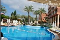ПИТАНИЕ. Питание нам тоже понравилось. Очень много разных блюд. За 4 дня мы даже не успели все попробовать. Много разного жарят на углях. Все блюда приправлены с местными специями. Но и не стоит ждать в чужой стране русских борщей и салатов. Их и на родине можно вдоволь накушаться. Есть стол для аллергиков и также небольшой детский стол. Десертов много, но они все однотипные. К сравнению в отеле Холидей Парк десерты были гораздо интереснее. Фрукты были, но т.к. не сезон для них (сезон август-сентябрь), все было стандартно - апельсины, яблоки, грейпфруты, дыни, маленькие зеленые супер кислые сливы. На рыночке напротив отеля в ларечке ближе к мосту справа мы покупали арбуз и клубнику. Клубника как наша с кислинкой 2$ за кило, поларбуза вытянуло на 2,5кг тоже за 2$ купили. Сладости в коробках стоят 3-5$, гранатовый соус 2-4$, футболки, блузочки и т.д. от 8-12$. Раки 0,5л 30$, вино от 10$ за бутылку. Сланцы от 8$. Это если решите что нибудь на презенты приобрести. На пляже в баре мы брали пиво. Иностранцам конечно наливают в стаканы, русским в бумажные большие стаканы. Но нас это не напрягало. В остальных барах на территории самого отеля всем наливают в хорошие пластиковые стаканы. В ресторане очень быстро убирают грязную посуду со столов, что приятно. На столах стоят живые розочки в вазочках. В барах делают неплохие коктейли, нам нравились. Пиво нас тоже устраивало. Вино в обед, ужин брали красное и розовое. Сухое. Красное нам понравилось больше. Вино наливают из бутылок.