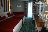 Отдыхали с подругой в период с 07.05. по 17.05.2014 г., в первые два дня был проливной дождь, в это время осваивались в отеле рестораны, сауна (джакузи вообще не работало), караоке... оставшиеся все дни была суперская погода. Отель очень огромный и нереально красивый, отличные сервис, быстрое размещение (сразу после обеда), отличный номер, персонал по русски может и не очень хорошо говорит но все понимает, все дружелюбные, еда разнообразная и вкусная, что очень порадовало, напитки тоже хорошие кроме соков, даже был бейлиз) Море, пляж не плохой, лучше купаться с пантона, заходить по камушкам с берега не очень комфортно. Водные горки не отпускали до самого отъезда))) Ездили на дискотеку с аниматорами в аланию в ночной клуб арена, классно оч понравилось, в автобусе в плоть до танцев было))) В отеле скудная анимация - единственный минус отеля. Каждый день ходили на дискотеку в отеле, тож понравилась, бармены не спрашивая наливают коктели уже зная кто и что пьет)))Ездили на автобусе в Аланию сами по себе погулять, привозят в центр на рынок, цены там средние, недалеко от отеля приезжает рынок раз в неделю там дешевле все. В Алании все чистенько и аккуратненько. Ездили туда еще вечером, очень красиво, были на пристани, улица клубов и ресторанчиков на горе крепость, клубы не работали из-за взрыва на шахте. Остальное время проводили в отеле, времени ни на что не хватало))) Не обрадовало что ресепшен (зал) работает до 24:00 и там не было музыки. В последний день ездили на корабле Кралл 007, пиратский огромный корабль, стоит около отеля. Стоит 30 долларов с 8:30 до 16:00, несколько остановок для купания, три пещеры, пляж клеопатры, алания (пара часов погулять по магазинчикам, цены самые дешевые показались), обед (не оч вкусный) анимация, пенная дискотека ...может еще что то упустила) и все это сопровождается отличной музыкой) Безумно классный Алекс - пират (аниматор) на корабле, его бы в отель аниматором;). Прогулка на корабле очень понравилась, 5 балов). Не понимаю куда и зачем я вернулась после такого отдыха, верните меня обратно)))) Привет Белоруссии (Витебску), Иваново, Москве.