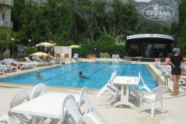 Из номеров открывается вид на море или на хребет Тавр. Если окна выходят на соседний отель "Лариса", то будьте готовы, что в номерах будет шумно: там проходят дискотеки до полуночи. В самом Adress beach скромнее, чем у соседей, но аниматоры работают тоже ежедневно. Анимацию я видел только взрослую; впрочем, в мае и детей школьного возраста почти не было.