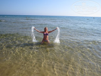 Прозрачная вода, можно с маской поплавать,понаблюдать за подводным миром -кораллы, рыбки. Но поскромнее, чем в Красном море.С детьми конечно лучше на песчаный пляж. На том и другом есть душ, на песке туалет, бар и переодевалки.