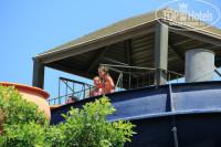 Территория: узкая, вытянутая, но достаточно большая! Номеров тоже много. Мало того, что есть главный корпус, плюс потом идут мини-корпуса и бунгало. От воды не воняет (как многие тут пишут). Бассейны хорошие, чистые, горки работают определенные часы - не все время. Малышня очень им рада. Да и не только малышня. До моря идти по мосточку минуты три спокойным шагом.