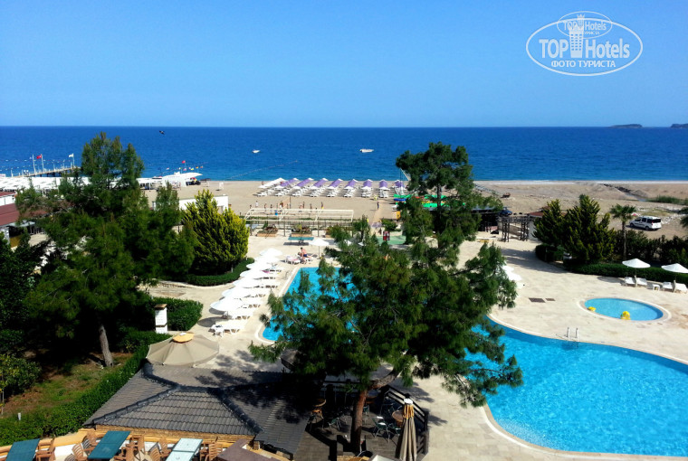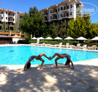 Территория отеля симпатичная, два бассейна, бары, диско, качели, шезлонги и т.д. Пляж свой хороший, камни совершенно не мешают плаванию. На анимацию ходили только пару раз, но было интересно. Девчонки-аниматоры проводят йогу, аквааэробику в бассейне, придумывают различные игры, когда идет дождь. Про дискотеку не скажу, мы не любители клубов, танцев... У отеля есть хорошая бесплатная сауна, после плавания под дождем там грелись частенько.