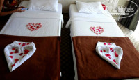 Отдыхали в мае с 5 по 13 с подругой, всё в общем-то понравилось. Встретил очаровательный мужчина на ресепшене, спросил нас, где мы хотим, там комнату и получили. Вид из окна на море, комнаты с балконами, всё чистенько, аккуратно. Убирались ежедневно, меняли полотенца и постельное. Имеется ТВ, душ, шкаф, платный сейф, но он маленький, поэтому многие ценности оставляли так в шкафу и всё в порядке было.