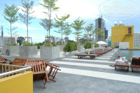 Территория отеля. Небольшая территория, пара бассейнов, внизу и на крыше. Возле нижнего бассейна бар, там же берут пляжные полотенца, и там же тусят индусы, которые на белых женщин смотрят так, будто последние лет двадцать провели на необитаемом острове, что в общем-то было не очень приятно как мне, так и моему молодому человеку. Поэтому ходили в бассейн на крыше, там в качестве бонуса вид на город и отсутствие похотливых индусов. Правда однажды встретили там очень шумных гашеных соотечественников, вот между ними и индусами в качестве соседей по бассейну я бы всё-таки выбрала вторых. Когда таковых там нет, в бассейне на крыше очень здорово и можно отдохнуть от шумной Паттайи. Нижний бассейн работает до 21.00, на крыше до 23.00.