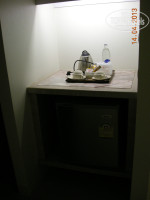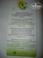 В номере сейф, холодильник, с мини баром, фен-закреплен на стене, чайник (сахар, кофе и сухие сливки -все в пакетиках приносилось, при отсутствии ежедневно, так же как и пара бутылок бесплатной питьевой воды). Полотенца как обычно, маленькое, большое и ножное-все белоснежные, были в номере, для пляжа и бассейна выдавались отдельно под роспись около бассейна на первом этаже. Убирались в номере ежедневно, но постельное белье меняли только после того как ложилась табличка с просьбой на постель (она есть на фото)