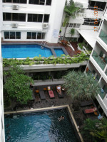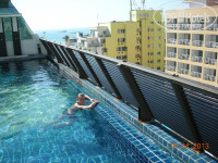 Заселение. Так как отель находится на узкой улочке, нас пересаживали из большого автобуса в микроавтобус с тайским гидом, которая просто завела нас в отель и как только услышала, что свободных номеров нет, тут же ретировалась. Мы остались с англоговорящими тайцами на ресепшене. Мои познания английского на уровне школьной программы.... В итоге трёх девушек, которых привезли вместе с нами, поселили в двухместный номер с раскладушкой, а нам было предложено на один день заселится в другую гостиницу - sunxclusive, которая находится почти на джомтьене. Нас увезли за счет гостиницы на легковом такси и....об ужасах этой гостиницы это отдельная история, скажу лишь, что мы с нетерпением ждали утра следующего дня, когда нам была назначена встреча с отельным гидом. Гид как оказалось ничем, кроме того чтобы предложить нам экскурсии, помочь не может, или скорее не хочет. Пришлось звонить на телефон горячей линии Одеон тура и решать свои проблемы самим.
