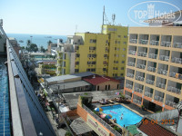 Отель состоит из трех корпусов, Один из них полностью с балконами (считается старым корпусом), один совсем без балконов и один -Tower, это наш корпус, частично с балконами. Территории как таковой у отеля нет, со всех сторон он окружен другими отелями и дорогой. Три бассейна располагаются между корпусами, один на первом этаже (с уголком джакузи и баром), один на втором этаже и один на крыше здания.