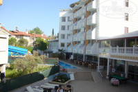Пляж - собственного пляжа нет. Но, если выйти из отеля и все время идти прямо (через соседний апарт-отель, затем переходим дорогу и проходим между отелями), то минут через 5 окажетесь на бесплатном пляже. ТОЛЬКО первые 4 от моря ряда лежаков принадлежат бару. На остальных можете спокойно загорать, при этом ничего не платить. Если все-таки захочется освежиться - стакан свежевыжатого апельсинового сока стоит 1,5$ (3 лиры).