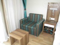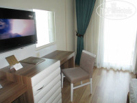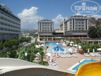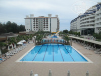 Добрый день! Отдыхали в отеле в мае с мужем и дочерью . Сказать, что нам понравилось, это ничего не сказать! Отель просто замечательный! Все новенькое ,чистое, безумно красивое. Номера просторные , с удобными кроватями . Вокруг зеркал подсветка, ящики прикроватных тумбочек с доводчиками. К уборке никаких нареканий: полы мыли каждый ,полотенца меняли ,постельное белье тоже. Каждый день приносили 1,5 литра чистой питьевой воды в бутылке. По приезду мини бар был заполнен колой, фантой , спрайтем и минеральной водой. Дальнейшее заполнение платное. Мы приехали в 12.00,сразу же надели браслеты и предложили пройти на обед, заселение обещали не раньше 14.00,нас это нисколько не расстроило, т.к. это международные правила размещения. На ресепшене никто по-русски не говорит, даже по-английски с трудом, в основном на турецком и немецком. Питание в отеле это отдельная тема, выше всяких похвал. Каждый день были вкуснейшие блюда: говядина, баранина, телятина , конечно курица и индейка, разные виды рыбы, иногда на гриле .Много овощей и закусок .А сладкий стол просто поражал своим многообразием!!! Из фруктов были яблоки , апельсины, грейпфруты, клубники , к сожалению не было, но мы купили в палатке прямо около отеля за 3 $ за килограмм(очень ароматная и сладкая).Официанты в отеле большие умнички. Все просьбы выполняли быстро, посуду грязную убирали оперативно, осталось только на руках нас носить!!!Анимация в отеле не навязчивая ,никто на ухо не орет, днем водное поло, аквааэробика , пляжный волейбол, дартс. До моря идти три минуты по дорожке между отелями. На пляже чистенько, ни одного окурка .Заход в море с пирса ,есть и заход с пляжа по песочку ,но он маленький и рядом речка течет. С погодой нам повезло ,все дни было жарко и солнечно, в море купались каждый день, хотя иногда бывали и волны, а нам очень нравилось!!!Отель скорее семейный ,молодежи может быть скучновато .Компактная зеленая территория, есть две детские площадки ,мини клуб ,кушать можно круглые сутки. Очень милый и уютный отель, который я буду рекомендовать всем своим знакомым ! Огромное спасибо всему персоналу отеля за прекрасный майский отдых в этом замечательном отеле!!!!!!!!!!