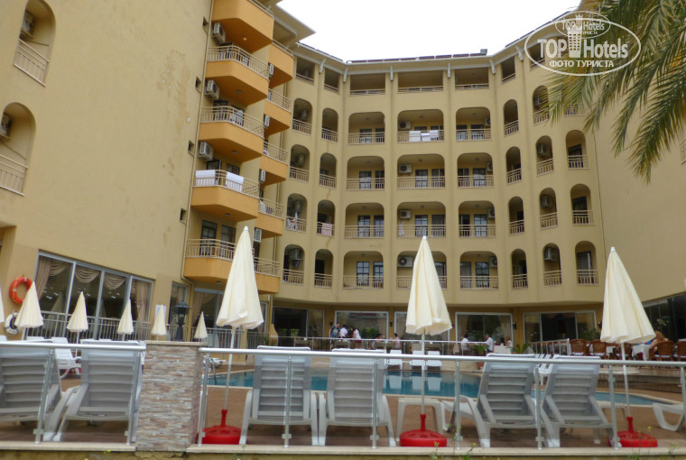 Отель находится в центре Алании, в 70 метрах от своего пляжа ( лежаки платные - 2 доллара.) Сам отель с недавним ремонтом, скромный, но чистенький. Окна деревянные. В номерах - холодильник, сейф (платно), новая мебель, фен, душевые принадлежности, правда они были только при заселении. Так что рекомендую всевозможные гели и шампуни брать с собой. К слову, эта группа товаров в Турции стоит гораздо дороже, чем в России. Убирали в номере каждый день, постельное белье меняли через 3 дня, полотенца -каждый день. Очень хорошее расположение у отеля - все рядом: порт, крепость, рынок, всевозможные магазины, где цены на качественный товар ( имею ввиду одежду) ниже, чем в России. Все туристы, без исключения любят LC WAIKIKI. Я рекомендую MUDO CYTI. Рынок, за редким исключением. сплошной Китай. Экскурсию на яхте рекомендую покупать непосредственно в порту и непосредственно у понравившейся яхты. Скооперируйтесь по 4-6 человек и вместо 35 долларов заплатите 20, а то и 15. До порта пешком доходили за 15-20 минут. Вернемся к отелю. Персонал понравился начиная с ресепшена и заканчивая управляющим отеля. Отдельный респект бармену Мустафе. Еда достаточно разнообразная, но приготовленная не всегда " от души": курица, печень, сердечки, омлет с овощами, капуста тушеная, всевозможные турецкие пасты, салаты, макаронные изделия. Мяса как такового не было не разу. На завтрак - яйца отварные, брынза, колбаса, овощи, оливки самые разнообразные. Из фруктов - яблоки и апельсины ( очень сладкие). Чай не вкусный, кто чайный гурман. Кофе неплохой. Спиртные напитки вино, джин, водка, раки, пиво. Посуда -стекло. Территория у отеля небольшая, но уютная. А вообще рекомендую посмотреть видео в Ютубе от Андрея Бушинского "Гюнеш Сан Тайм", он там показывает немного и Гюнеш Хаус, и прилегающую территорию, и дорогу до моря. Счастливо всем отдохнуть!!!