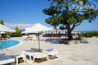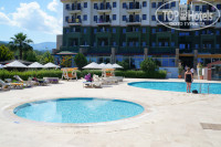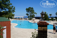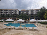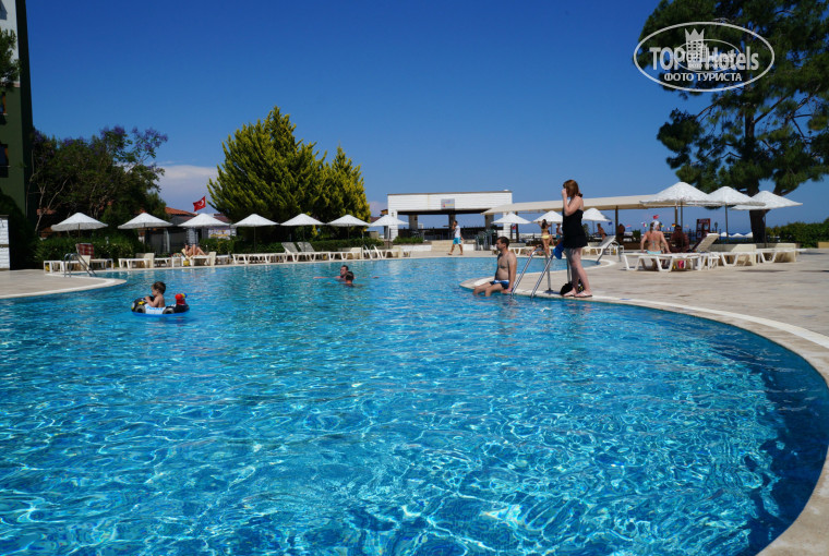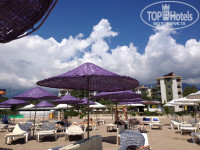 Территория отеля и природа вокруг выше всяких похвал. Площадь небольшая, но все расположено удобно и компактно. Прекрасный пляж с бесплатными лежаками в двух шагах (полотенца для пляжа платные - 10 долларов за 13 дней), два бассейна - основной и второй маленький неглубокий для детей, кальян-бар, дискоклуб, амфитеатр для вечерней анимации, настольный теннис, площадка для гриля. И все это окружено зеленью различных деревьев и кустарников. А какой вид на горы!!!! О нем можно рассказывать часами. Море лазурное, очень красивое и чистое. Пляж песочный!!!! И это очень здорово. Галька только при подходе к морю.