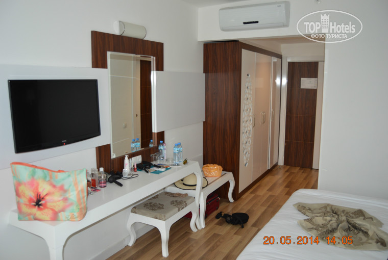 Здравствуйте! Отдыхали в отели с 19.05.2014 по 28.05.2014 с мужем и 6 друзей. В отель приехали в 8 часов, одели браслеты предложили позавтракать, т.к. свободных номеров не было. Два номера дали в 10 часов, вторые два в 11 часов. Нам достался номер 1129 на первом этаже с видом на главный вход, номера просторные, новые, все работало. Убирали каждый день, но на кровате красоту не разу не сделали, хотя мы оставляли доллары.