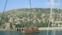 ЭКСКУРСИИ. Тут очень большой выбор экскурсий, начиная от сафари на джипе заканчивая полетом в Израиль.Так как у нас было мало дней, мы выбрали одну экскурсию, за 40$ мы отправились в путешествие вдоль Алании. Мне очень понравилось, капитан у нас был просто не реально позитивный человек, он так зажигал там, мне кажется одно его присутствие стоит только 40$ )) (выложу фотку с ним, кому удастся побывать в его компании, тому очень сильно повезет :)). 3 раза купались в открытом море, обед на корабле был тоже очень вкусным. По напиткам - вино, пиво из алкогольных, кофе, соки, чай включены в стоимость в неограниченном размере. В процессе плаванья узнаешь много нового и заряжаешься не реальным позитивом, пенная вечеринки и веселый капитан со своими конкурсами не дадут вам заскучать ;). Позже я узнал, что те же экскурсии можно купить у местных, почти вдвое дешевле, лично мой друг с Ижевска так и сделал, но я не знал :) По этому перед тем как приобрести экскурсию, поговорите с русскими людьми из отеля, они скорей всего вам подскажут.