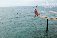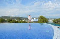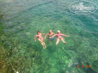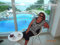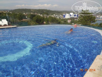 Здравствуйте, отдыхали с друзьями (три пары) в Water Planet с 17 по 24 мая 2014г. Заселили по расписанию, т.е. в 14-00 в шикарный номер на 9 этаже с видом на море, но нашим друзьям предложили пожить в семейном двухкомнатном номере 2 дня, а затем пообещали расселить. Так и было, обещание выполнили и за понимание и лояльность они получили в подарок от отеля бутылку вина с фруктами и бесплатное посещение спа салона на 4 человека. Вид с балкона потрясающий, бирюзовое море, впечатляющие соседние отели, бассейн "Инфинити" (вход +18) находящийся на уровне 6 этажа, бассейн с волнами, внизу центральные бассейны- красота. А вечерний обзор вообще великолепный, везде подсветка, а соседние отели переливались всеми цветами радуги. Мебель в номере новая и современная, кровать такая удобная, что вставать не хотелось, в санузле все стерильно, кондиционер охлаждал номер за 1 мин. Территория аквапарка вообще впечатлила сочетанием дикой природы и современных построек. Шезлонги расположены не только возле бассейнов и на пляже, а везде где только возможно. Территория огромная очень зеленая и цветущая, много хвойных деревьев, так что можно отдохнуть на шезлонге в тенечке под елочками. Все отлично, нам понравилось, правда лично мне не хватило берега, в этом отеле вход в море только с пантона и на пляже немного "подгулявшие" зонтики. Кормили хорошо, на все вкусы есть еда, обслуживали тоже не плохо, но только после того, как уехали 550 лучших турецких студентов, а пока они "отдыхали" приоритеты были у них, что не очень приятно. . А в целом - отличный отдых, природа, красивое море, свежий воздух, кормят, развлекают, что еще надо?!!! Уезжать не хотелось.