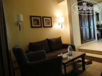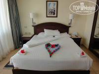Приехали 17 мая около 11 утра. Сразу же получили браслеты, оставили на ресепшен распечатки заявок на бонусы постоянным гостям (в отеле второй раз) и молодоженам. Заселили нас минут через 40, номер достался 4303. В отличии от прошлого 4218, где была одна комната и две двуспальные кровати, в этом номере комнат было две: первая с диваном, креслом и столиком, вторая- с одной огромной кроватью. Кондера, соответственно, тоже было два, что спасало ночью. Номер наш находился в самой правой, зелёной, части отеля, рядом с детским клубом и конюшней; с новым ремонтом и большим телеком (который мы так ни разу и не включили, так что о количестве русских каналов не сообщу). Единственным минусом номера оказалась ванная комната, точнее отсутствии даже шторки у душа, который почему-то был направлен в сторону унитаза и зеркала, потоп был обеспечен =) В номере все работало исправно: оба кондера, электронный замок, холодильник, сантехника.