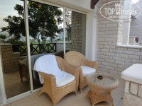 Территория отеля огромна. Между первой линией номеров и морем огромное пространство, где-то засаженное зеленью, где-то пустынное, где-то с раскиданными камнями и лодками. Суть в том, что вида но море там ждать не стоит и переплачивать за это тоже.