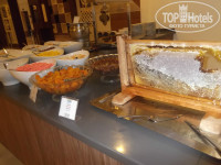 Особо отмечу еду: она здесь замечательная, из всех пятёрок что мы отдыхали-Калимера отличилась: тигровые креветки, лосось, баранина, телятина, индейка, курица, морепродукты...всё без специфических специй, практически как диетическая еда, очень много разных фруктов: дыни, арбузы, абрикосы. персики, груши, яблоки, клубника и т.д....мы остались очень довольны. Всё настолько без специй. что дочка научилась есть макароны, яичницу, подливы из мяса. делала в номере пюрешки из свежих фруктов...животик на всё реагировал "на ура", хотя с ним у нас бывают проблемы.