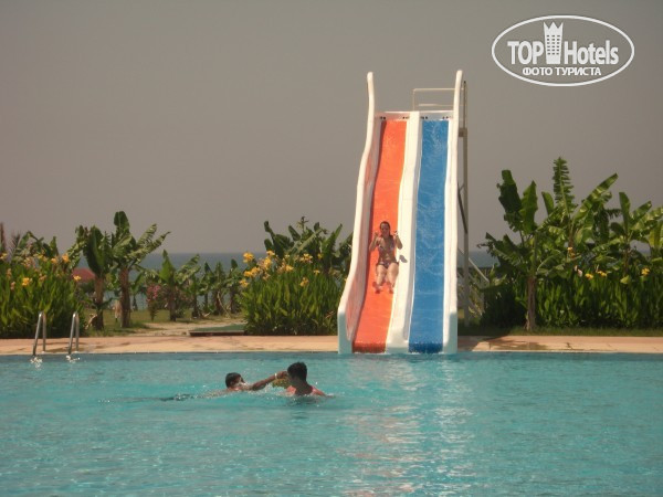 Горка работала весь день, можно было в любое время плюхаться с нее в бассейн.