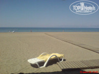 Пляж просторный, лежаков больше чем людей.