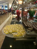 Ресторан A' la cart... Отдельная история: записываться нужно заранее на ресепшн (если вас несколько, записывайтесь не отдельными номерами, а 3322+3327 например, иначе за разные столы посадят). Вход в сие заведение слева в конце основного ресторана. Там ТИХО!!! Нет никакой фоновой музыки!!! Слышно, как едят за дальним столиком! Морепродукты... Салат, суп, кольца кальмара, рыба, десерт. Растягивают на 2 часа (начало в 19.00, как и основной ужин), так, наверное, чтобы не успели поесть в общем ресторане... Время потеряли только))