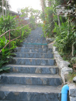 Когда строгие работницы ресепшин окончили свою сложную процедуру заселения (с ксерокопированием паспортов и миграционных карт), нам выдали ключ с номером 121. Я обрадовалась, что это видимо на 1 или 2 этаже, т.к. была уже наслышана про количество лестниц и подъемов к «бунгало» в данном отеле. Работник отеля браво выбрал себе самый маленький наш чемоданчик и повел нас к номеру. Сначала мы доехали на лифте до 2 этажа…а потом вышли на улицу и пошли… и пошли! Лезть с чемоданами по таким крутым лестницам – это было что-то. Я конечно же сразу сбагрила тайцу еще один свой чемоданчик. Но это мало изменило ситуацию.