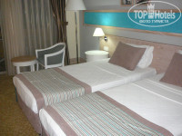 Номер свежий, никаких партаков в ремонте мы не заметили. Уборка и смена полотенец каждый день, белье раз в 3 дня, все как и было заявлено на сайте туроператора. В номере есть все необходимое. Телевизор с 2-мя русскими каналами. В номере есть сейф (платно).