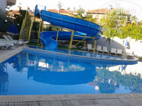Территория- не большая, но вполне уютно) Внешний вид оформлен простенько, но со вкусом. Бассейн разделен на взрослый и детский (с горкой), горку включают 2 раза в день, дети в восторге, да и взрослые тоже! Глубина взрослого около 1,3м, детского по колено! Есть небольшая детская площадка. Развлечений как таковых нет, каждую неделю проходят Турецкие ночи.Посмотреть стоит, достаточно красиво и зрелищно! В баре бывают дискотеки, часов до 12 или часу! При отеле работает хамам и небольшой сувенирный магазин (самое необходимое, цены приемлимые).