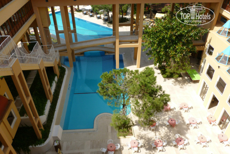 Всем привет! Был в этом отеле с 24.04 14 по 02.06 14. Приличный отель,чисто ухоженно,в номере все работает ,постоянно убирали в номере и меняли постельное мне показалось через день,а полотенца каждый день,в холодильник докладывали по 2-е 0,5 воды. Да по утрам начинается пение каких-то птиц прям завораживает.На пляж выдают полотенца,( залог-в конце вернули),после 12.00 подкармливают вполне прилично,того кто не хочет в отель возвращаться,в отеле в ресторане конечно лучше.Есть где погулять и отшопиться,конечно можно и на автобусе съездить в поселок,но там тоже самое не на много дешевле ,а выбор тот же.Персонал относится очень хорошо особенно когда даешь чаевые,но это как и везде.С языком у них проблемы,легче им на немецком т. к. отель считается немецким,есть англичане,итальянцы и еще кто-то был,да и турки отдыхающие есть с некоторыми весело пообщались.В ресторане с фруктами нормально,мясо рыба,вина на заказ можно пить конечно местного производства.Обслуга в ресторане откликалась по первой просьбе.Ночами было тихо,хотя некоторые жаловались.С соседних отелей говорили что в середине лета,в этом отеле очень душно т.к.сплин система не справляется,особенно на верхних этажах.В мае с открытой дверью на балкон нормально спалось,хотя соседи(русские)жаловались что кондей не работает ходили на рецепшен им сказали что еще не сезон,но потом все же включили и вроде начал холодить но как-то слабовато.В общем мне понравилось в этом отеле,скорее рекомендую чем нет.