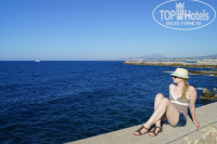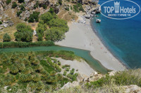 Пляж широченный и длинный, песчаный, попадается галька. Вход пологий. Вода очень чистая. Вообще, на Крите понравился цвет моря, какой то сапфировый. Лежаки бесплатные. К обеду свободных не было. Вода с 18 по 29 мая была прохладной. Но многие купаются,дети в том числе. До ближайшей деревеньки минут 10-15 ходьбы.