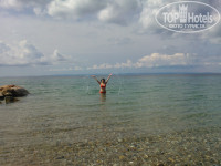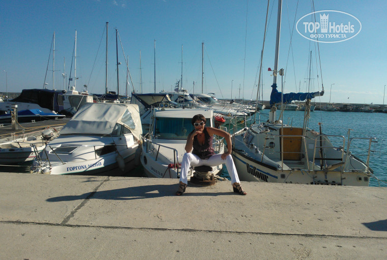 Пляжа как такового нет. Можно пойти налево от отеля по набережной в районе порта масса кафе со своими пляжными верандами. Купив что-нибудь на 3 евро, получаете один лежак бесплатно.