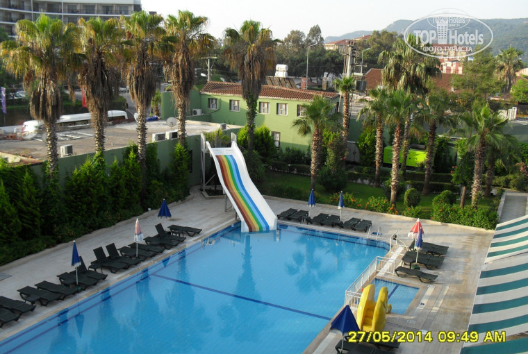 Отзыв написан по горячим следам, вернулись из Турции вчера. Если Вы ни разу не были за рубежом и не знаете, что такое отдых в отеле, то данный отель рекомендовать можно. Обозначу минусы, которые необходимо знать, чтобы не удивляться происходящему:-). Во-первых, что напрягало больше всего (всё другое было бы незаметно) - это дурной отель по соседству с не менее сумасшедшей музыкой, которая выносила мозг частично в обеденное время и ежевечерне до 00.00. Если открыт балкон, то друг друга в номере не слышно, а к телевизору приходилось прислушиваться. Поэтому не стоит вестись на красивый вид из окна, когда под балконом долбежка с вибрацией.