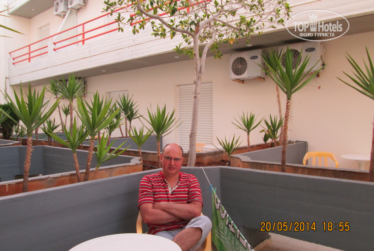 Отель находится в самом центре Херсониссоса. Пляж рядом. Причём не самый худший, хотя в воду заходить желательно в тапочках. Номер простой но чистый и удобный. Кровати достаточно жёсткие. Вода горячая была всё время.Жидкое мыло, туалетная бумага были всегда. Сантехника работала нормально.Постель и полотенца кипельно белые, меняли три раза за 10 дней. Холодильник и кондиционер работали. Шкаф конечно не очень, но дополнительные плечики дали по первой просьбе. Девушки на ресепшене - прелесть. Одна даже говорила по русски.Гид тур фирмы не нужен вообще, т.к. вообще не было никаких проблем.Номер убирали каждый день причём хорошо и без чаевых. Питание однообразное но сытное и качественное. Мясо на ужин было всегда. Морепродукты - часто.Десерты и фрукты тоже всегда. Выпечка хорошая. Бассейн есть и работает, но мы там не отдыхали - на море лучше. Веранда приномере большая. Там удобно сушить вещи (если привезти с собой верёвочку). Есть столик и два стула. Если едите не на "ол инклюз" надо брать с собой кипятильник или чайник - на ужин чай не дают. В общем отель хороший, но для тех кто любит активный отдых - в отеле никаких развлечений нет. Всем кто едет отдыхать в Херниссос советую взять из дома средства от комаров (их здесь много) и штопор ( здесь чудесные дешёвые сухие вина).