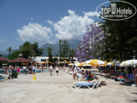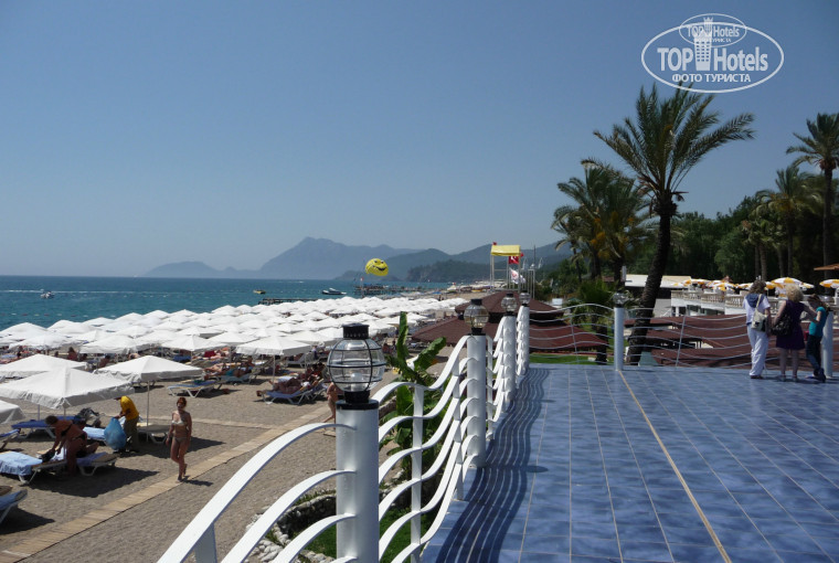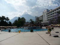 Всем доброго дня! Отдыхали в в этом отеле с 26 мая - 5 июня 2014 г. В Турции впервые. Выбирали отель, исходя от красоты места ( море, горы, растительность ), ухоженности территории самого отеля, ну и цены, разумеется. Ну, а насчёт питания, особых фантазий себе не строили и предполагали, что всё будет нормально. Всё и прошло не просто нормально, а замечательно, т.к. умели наслаждаться каждым днём своего отдыха. Заселили нас быстро - 20$ эту процедуру ускорили:). В главном корпусе, на 4-м этаже. Номера нормальные. Вполне комфортные. Убирали каждый день чисто. Мы иногда оставляли доллар на чай. Территория отеля зелёная, ухоженная. Около основного бассейна красиво цветёт сиреневым цветом дерево... Похоже на акацию. И то, что под этим деревом часто осыпано сиреневыми цветками - в этом есть красивость, а не мусор, как кто-то заметил:) Вернусь к питанию... Питание разнообразное. Особых мясных изысков не было... Индейка, курица, иногда говядина, рыба. Вполне сносно и вкусно. Много всего разного. Как многие пишут - голодными не останетесь. Большая очередь была только на гриле, когда там жарили что-то типа люля. Мы не вставали в эту очередь и обделёнными от этого себя не чувствовали:) Всегда найдётся поесть что-нибудь. Насчёт персонала... Не ищите невежливых служащих отеля. Они вежливы. К вам будут относиться ровно так, как вы сами будите относиться к людям. Улыбайтесь и будьте вежливыми. Могу сказать, что у нас осталось приятное впечатление и от самого отеля и от персонала. И в барах, если бывают небольшие очереди, то и это нормально. И стоять долго не приходилось. Море и пляж: Вода прозрачная. Немного сложен вход и выход из моря. Но и это нормально - массаж ступней:) А позагорать -свободных лежаков всегда хватало. Завершая, могу сказать, что наш отдых состоялся:). Разочарований нет. Что хотели, то и получили от отдыха за эту цену. Спасибо этому отелю!:)