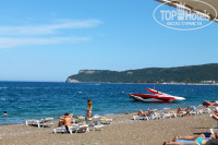 На пляж лучше брать шлепки,галька все же чувствуется),всегда есть свободные лежаки,можно леч как под навесом так и просто на солнышке,территория большая.