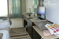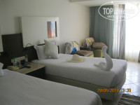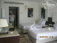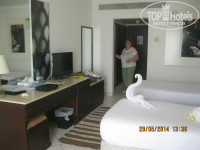 При расселении предложили номер с видом на улицу, согласились. т.к. это была северная сторона и не выходила на вечно шумящий бассейн. Номер оказался отличный!!!! Надо обратить внимание, что кондиционер работает только тогда, когда вставишь магнитный ключ в устройство при входе. Поэтому приходилось всегда ждать пока пойдет прохлада. Но долго ждать не приходилось. Телевизор ЖК с четырмя нашими каналами, которые я настроил на первые номера. При расселении было уже полночь, но ужин в номер принесли. Хотя есть не хотелось после самолета.