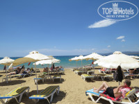 О пляже: море шикарное, заход галька (меня не напрягало, маму "да"), на пляже кафе (за €), шезлонги платные (не знаю сколько, по-моему около 5 €, мы не снимали, отлично было на полотенце на теплых гладких камнях).