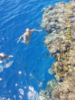 Риф красивый, много разнообразных рыб. Наши туристы говорили, что видели акулу. Я лично акулу не видела и не слышала, чтобы кого-то покусали или съели. Дна не видно. Сначала плавать было жутковато, потом привыкли. Местные говорят, что глубина там метров 40. Температура воды в море была 26 градусов.
