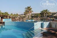 Территория отеля довольно большая т.к. объединяет в себе два отеля Stella Village 4 и Stella Palace 5, очень живописная и тенистая, за счет большого количества растительности- глаз радуется. Можно пользоваться тремя большими бассейнами Stella Palace и соответственно лежаками рядом с ними. Если кому интересно сразу предупреждаю, что в барах у этих бассейнов вас не обслужат, но если честно это не напрягает, т.к. до "своих баров" (а их два) всего минута ходьбы в которых вы можете в период с 10,00 до 23,00 порадовать себя пивком, узо, раки, бренди а детей безалкогольными напитками на основе колы и спрайта. Соки не рекомендую - юпии. Также практически в течении всего дня доступно мороженное, кофе и чай. Очень понравился Mediterra Bar, из которого открывается шикарный вид на море.